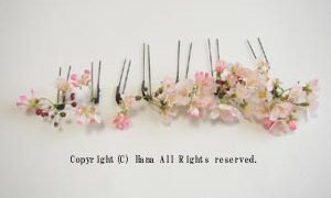 新作紹介 さくらのヘッドコサージュ 春といえば、桜ですね。先日アップした、さくらのヘッドコサージュです。桜の花が咲いている様子をかんざしで表現しようと何回も作品を発表してきましたが、今回はシルクフラワーを使ってリアルな髪飾りにしてみました。全部のパーツの一覧。7本セットです。... 2008.02.29 新作紹介