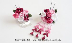 人気のアンティーク風かんざしセットが追加されております。このシリーズは友禅柄の一越ちりめんを使って作られております。総柄ではなく大きな柄の生地のため、取り方によって柄の出方が異なってきます。それだけに1点ずつ1点物となってしまうのですが、毎...