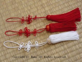 写真は上から、標準サイズの結び+スリム房、大サイズの結び+ボリューム房赤、白です。