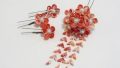 赤の地にピンクやベージュなど、いろいろな柄が入っていて賑やかなかんざしです。