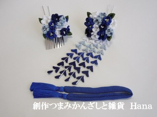 ベースの箱から手作りし、かんざしと同色のつまみ細工の飾りをつけて仕上げました。