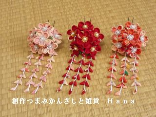 「アンティーク風下がりかんざし (左から)ピンク系、ワインレッド系、サーモンピンク系」