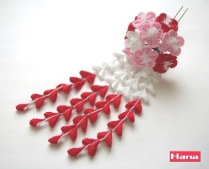 梅の髪飾りを新作に加えてずい分経ちました。七五三用、成人式用のセット、Uピンやヘアピンなどの単品も交えて全12種のバリエーションを作りました。