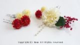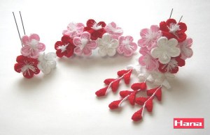 季節は桜だというのに、なぜか梅のモチーフにはまってしまい、半月かけて梅の髪飾りシリーズをリニューアルいたしました。以前は造花用ペップを使っていた花芯をやめて、糸でふわっとした雰囲気に仕上げました。