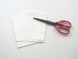 私は作りたいサイズに折ってからハサミでチョキチョキ。数をこなすのは結構大変です。