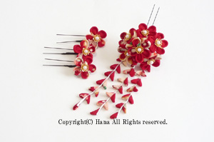 アンティーク風かんざしセット X Facebook はてブ LINE Pinterest コピー 2008.07.302025.02.27 人気のアンティーク風かんざしセットが追加されております。このシリーズは友禅柄の一越ちりめんを使って作られております。総柄ではなく大きな柄の生地のため、取り方によって柄の出方が異なってきます。それだけに1点ずつ1点物となってしまうのですが、毎回人気の品です。 華やかなワインレッド。 優しげなピンク。花芯に使用しているのは、赤いビーズです。 ピンクよりももう少し赤みのあるコーラルピンク。